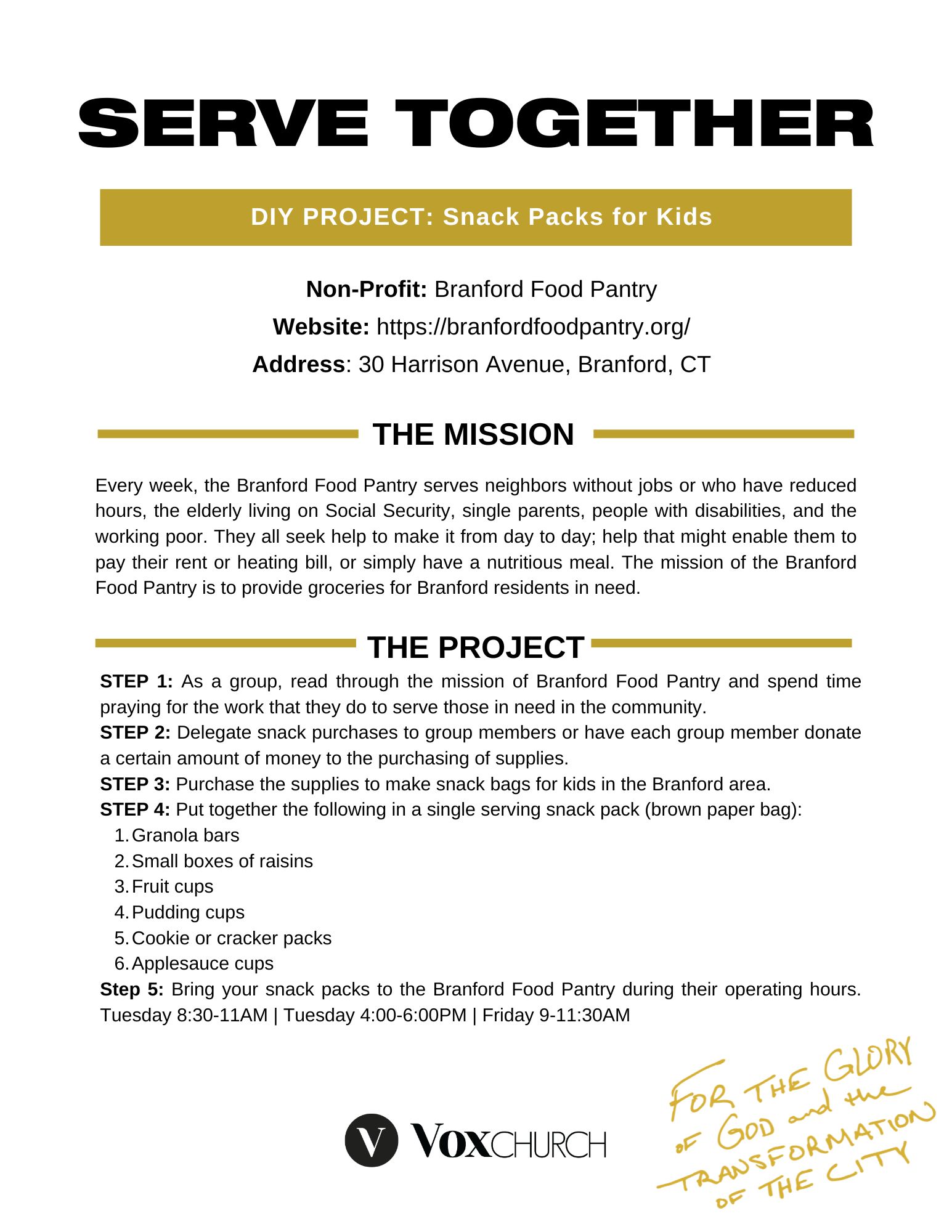 1 in 6 residents in Branford struggle with food insecurity and over 30% of students qualify for free and reduced lunch programs. Our desire is to uphold the cause of the poor and oppressed (Psalm 82:3) in our community.